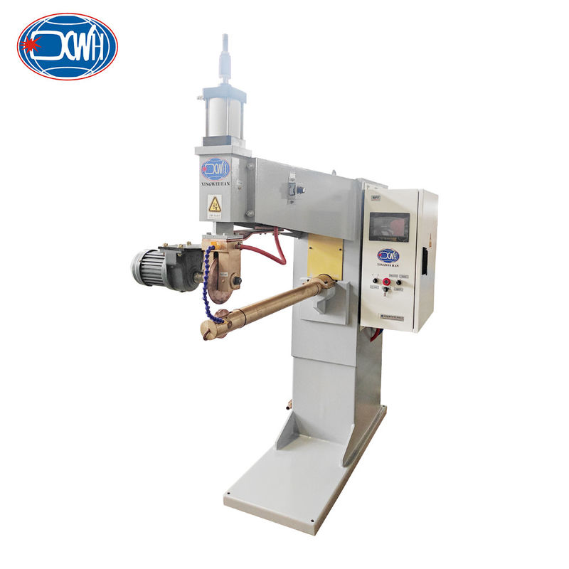 A seam welding machine usually consists of a frame, a pressure mechanism, a welding roller (electrode), a trimming knife, a welding power supply, a speed control transmission mechanism, and a controller. The seam welding machine is mainly used in oil tank, barrel, basin and other sealed container welding, and it can work horizontally and vertically.